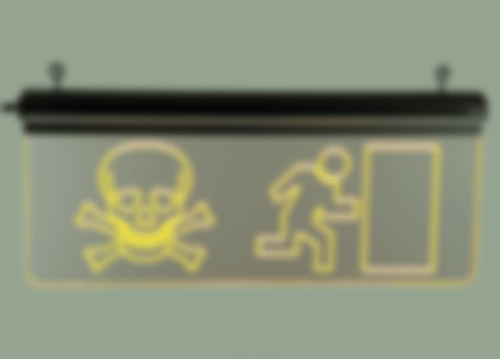 Leuchttransparent Piktogramm gelb Totenkopf und Fluchttür